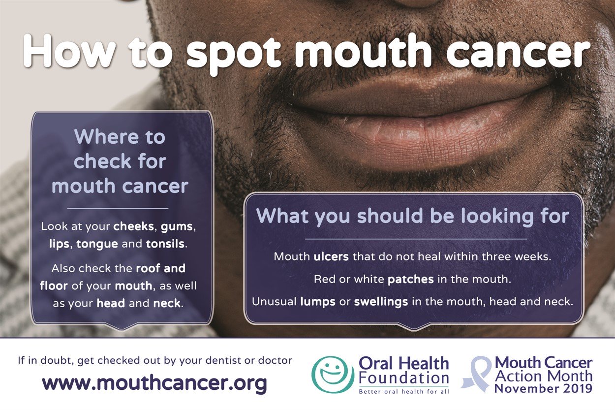 How To Know If You Get Oral Cancer / How To Spot Mouth Cancer St Michael S Orthodontics : Feel for lumps or enlarged lymph nodes in both sides of your neck and under your lower jaw.. When these cells become cancerous, they can easily spread to the surrounding tissues, or to other parts of the body via the lymphatic system. Teeth or dentures might get loose for no clear reason. If you go in for an oral cancer screening with a dentist who uses the vizilite plus technology, here's what you can expect from a screening session Oral cancer screenings help dentists detect mouth cancer or precancerous lesions , indicating you may have several doctors in your treatment team who include: Get the latest health information from mayo clinic delivered to your inbox.